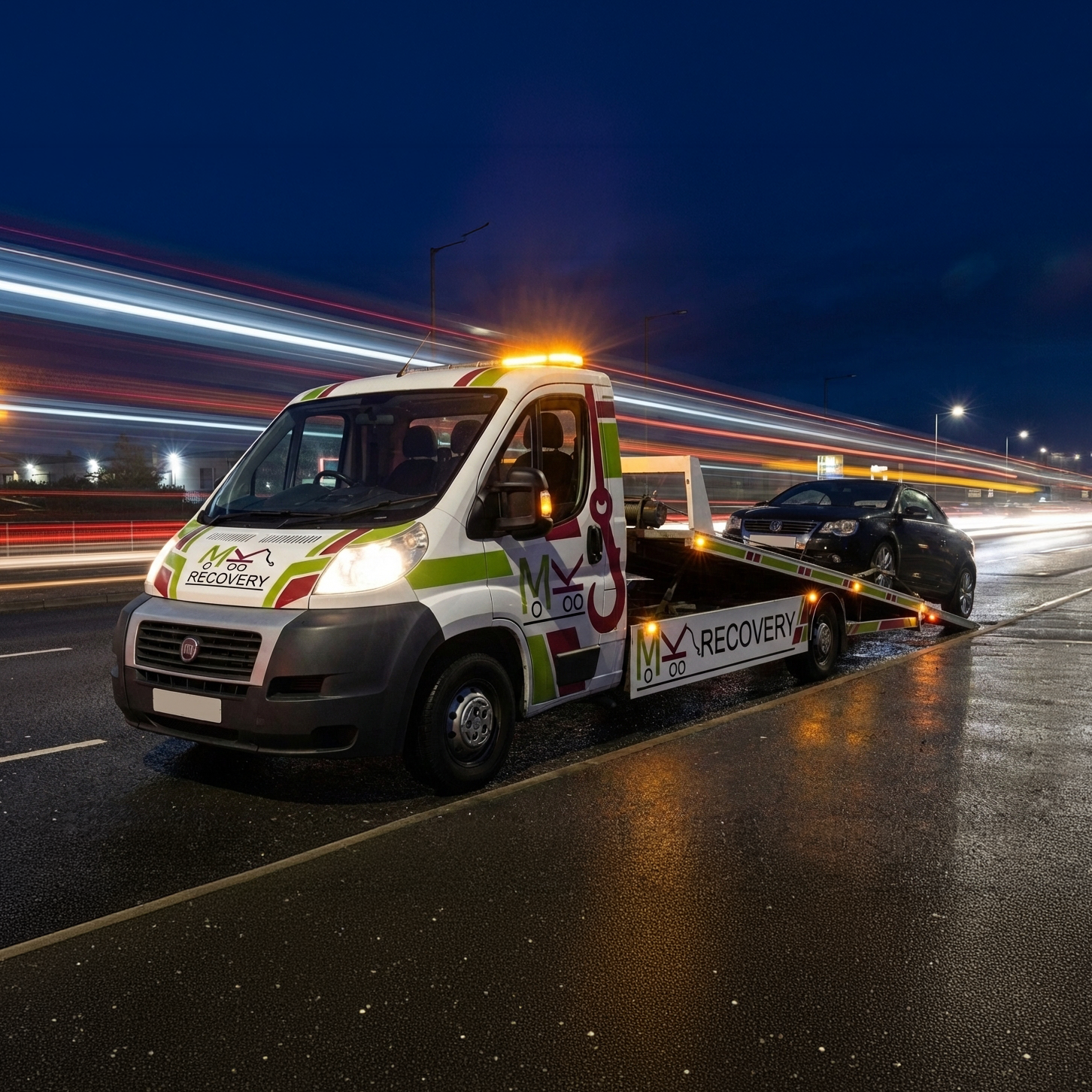 We operate a fleet of modern recovery vehicles capable of transporting cars, vans, 4x4s, and light commercial vehicles. From local callouts to long‑distance transport, we ensure your vehicle is recovered securely and delivered to your chosen destination—be that home, a garage, or a specialist repair centre.